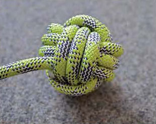 拳頭是一個(gè)大的繩結(jié)球,經(jīng)典的結(jié)和一個(gè)偉大的方式重新利用你的舊繩子。進(jìn)去一些攀爬區(qū)域不允許使用螺栓和金屬保護(hù)(螺母、凸輪等)。使用了吊索和猴拳頭取而代之的是結(jié)確保巖石得到保護(hù),如果放置得當(dāng),可提供很好的保護(hù)。