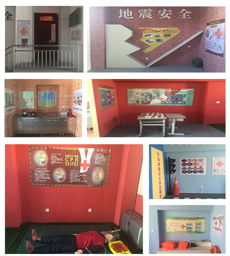 安全體驗教室運用“多媒體互動”“場景搭建”等高科技手段。整體涵蓋“交通安全體驗區”、“醫療急救體驗區”、“地震安全體驗區”、“防溺水體驗區”、“家庭安全體驗區”、“煙道逃生體驗區”、“消防安全體驗區”七大區域。