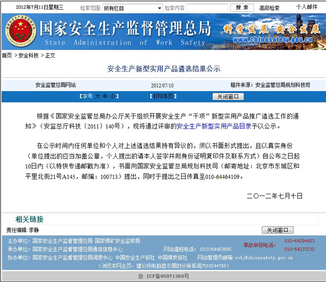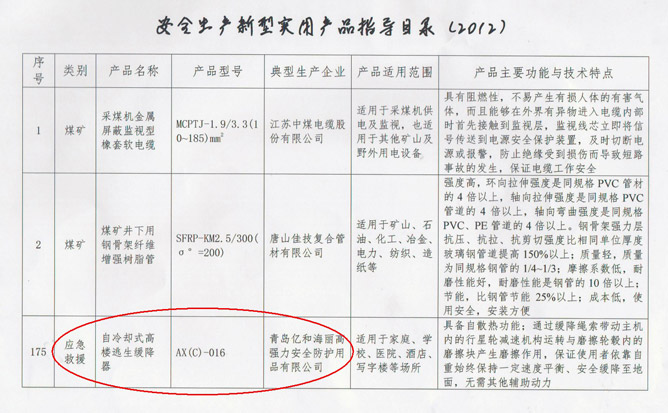 “安心”自冷卻式高層樓宇緩降器入選國家“千項”安全生產新型實用產品目錄